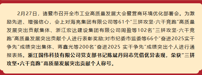 喜报|马年第一喜!陈斌丹荣获诸暨市 “三拼攻坚・六干竞跑” 高质量发展突出贡献个人