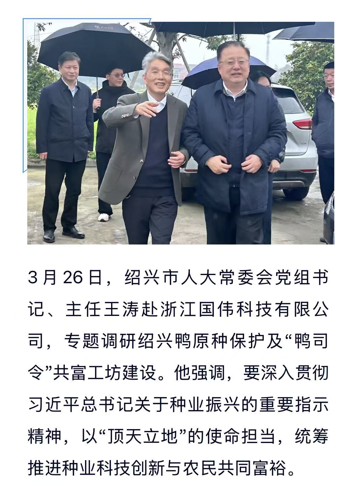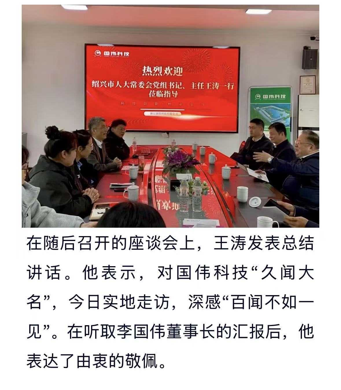 绍兴市人大常委会党组书记、主任王涛到国伟科技调研