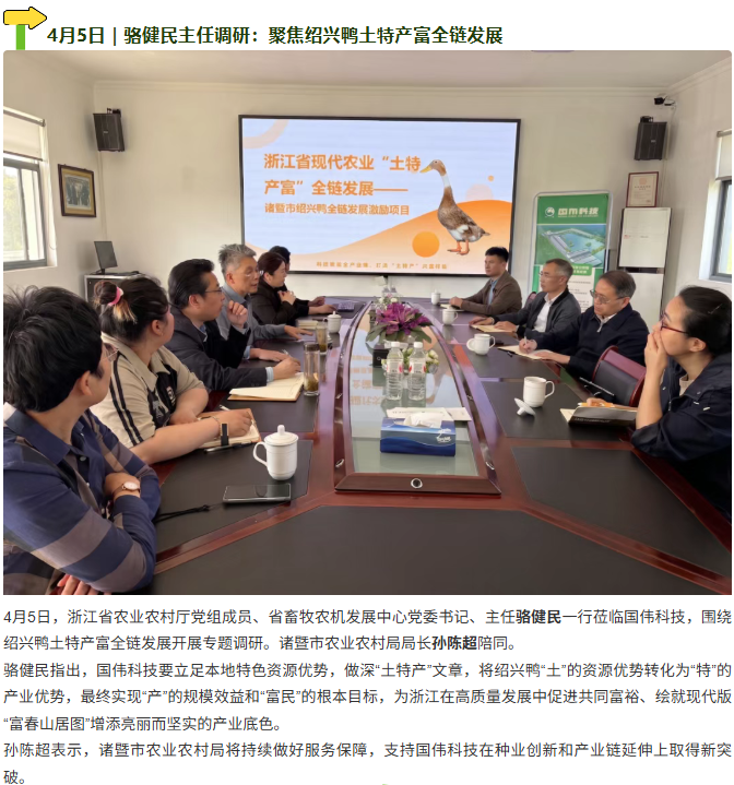 近期要闻|省厅把脉、科技赋能、供销助力、科协支撑、跨省协作——共筑绍兴鸭产业新高地