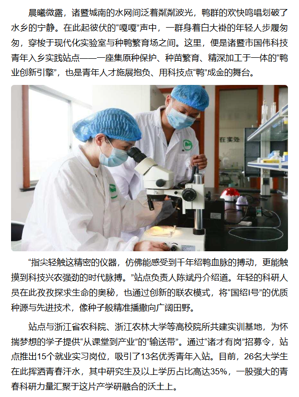 鸭鸣水乡 青春赋能 ——诸暨市国伟科技青年入乡实践站点