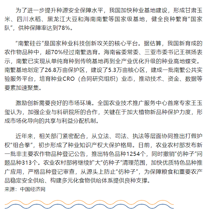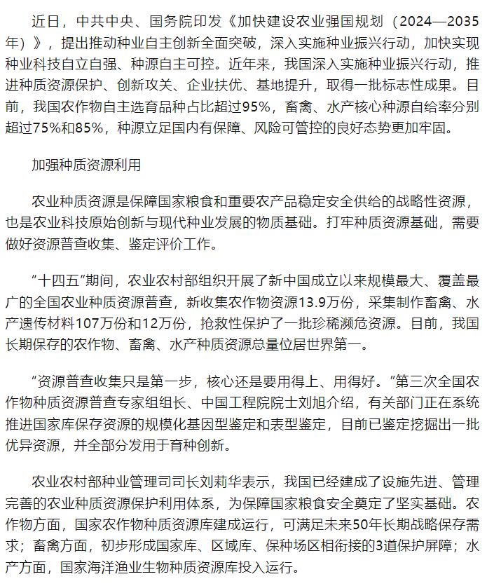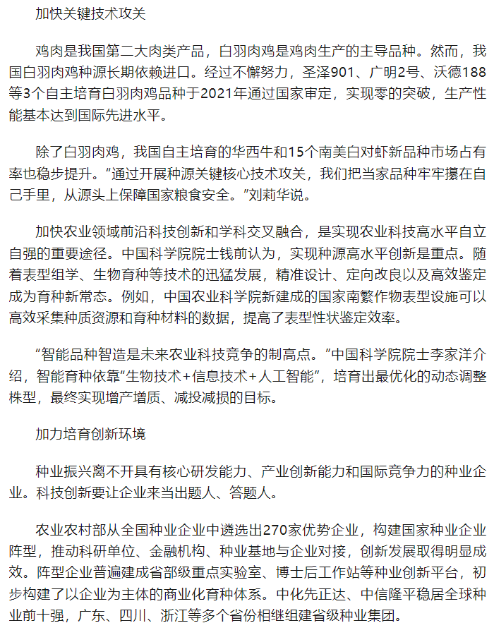 推动种业自主创新全面突破:畜禽核心种源自给率超过75%