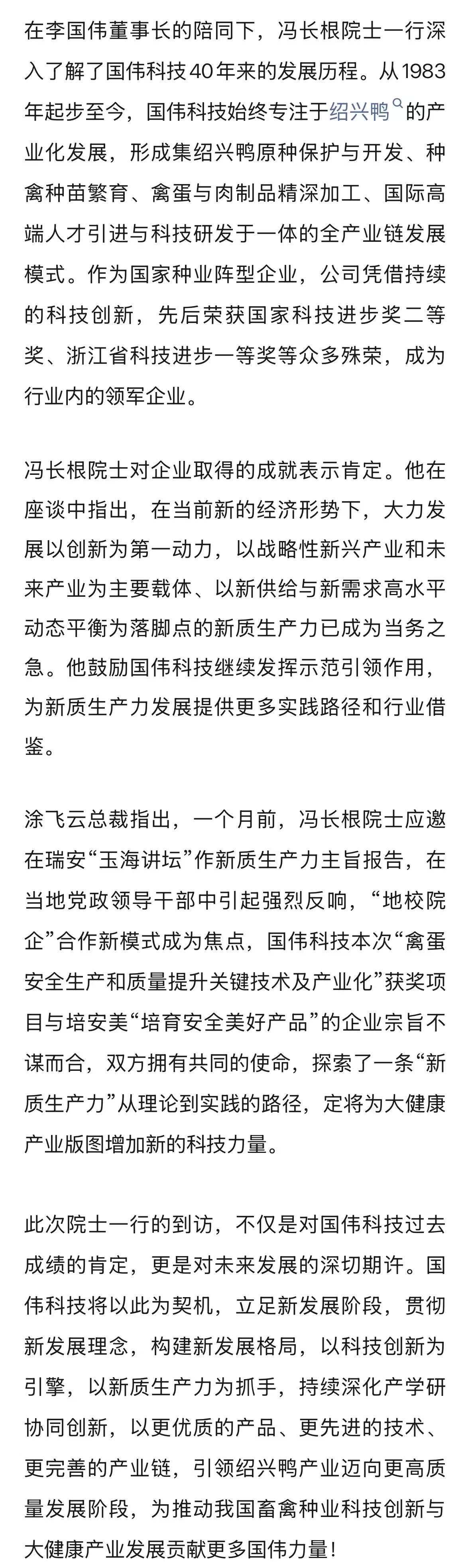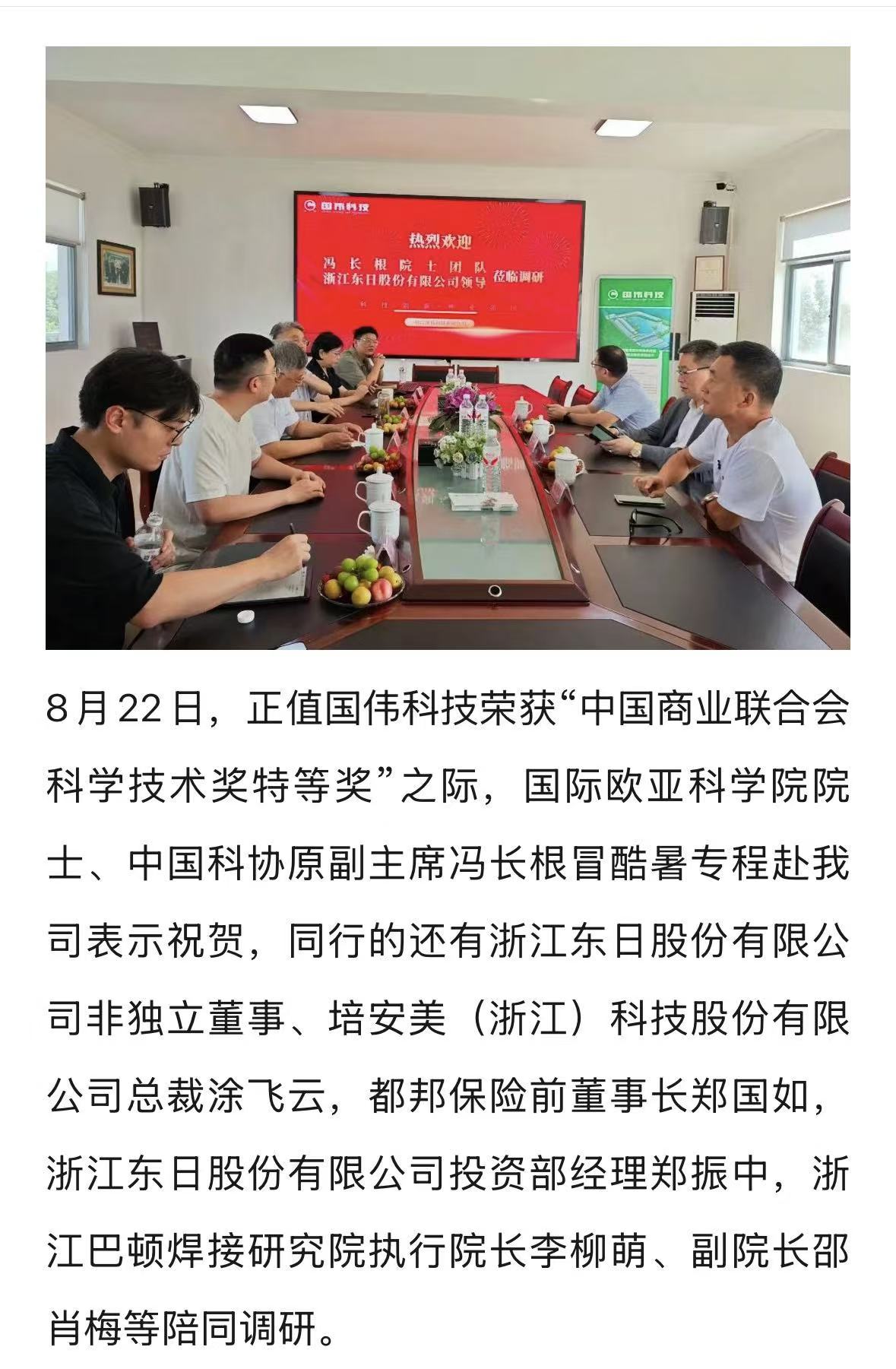冯长根院士团队与浙江东日股份有限公司领导一行莅临国伟科技调研
